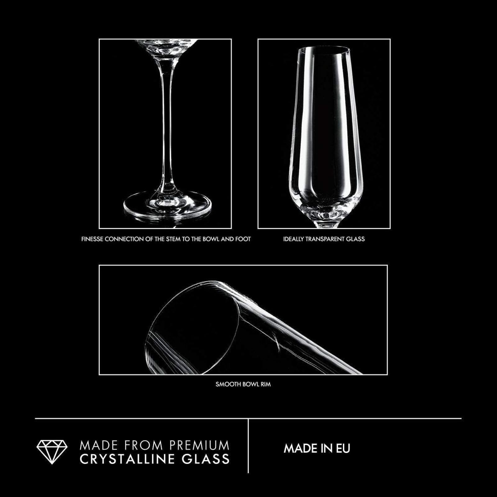 Fabriquées en verre cristallin de haute qualité, ces flûtes sont conçues pour résister au ternissement et aux fissures, tout en offrant une clarté exceptionnelle qui met en valeur la pureté et la finesse de vos champagnes. -