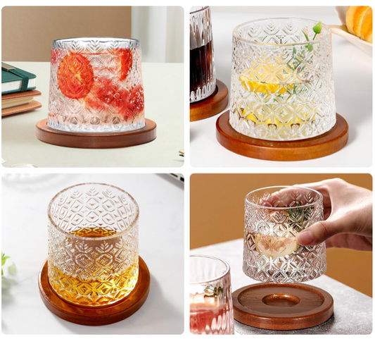 Verre à Whisky Rotatif Cristal – Base Bambou