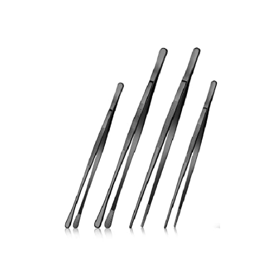 - 2 pinces plus courtes (25,4 cm) parfaites pour manipuler des aliments délicats comme les noix de pin, les caviars ou les canneberges.