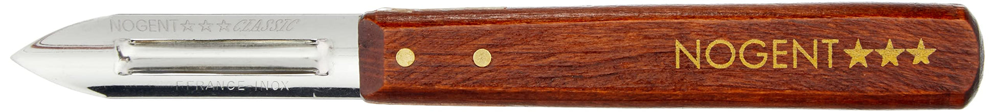 Précision et confort au quotidien : l’éplucheur Nogent 3 Étoiles associe une lame en acier inoxydable tranchante et durable à un manche en bois de merisier (prise naturelle, agréable en main) pour des épluchages nets et réguliers.