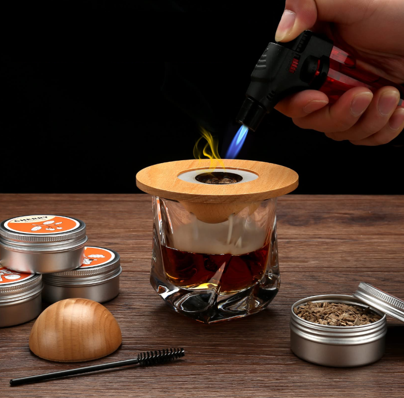 - Une cheminée de fumeur de cocktail en bois de chêne.