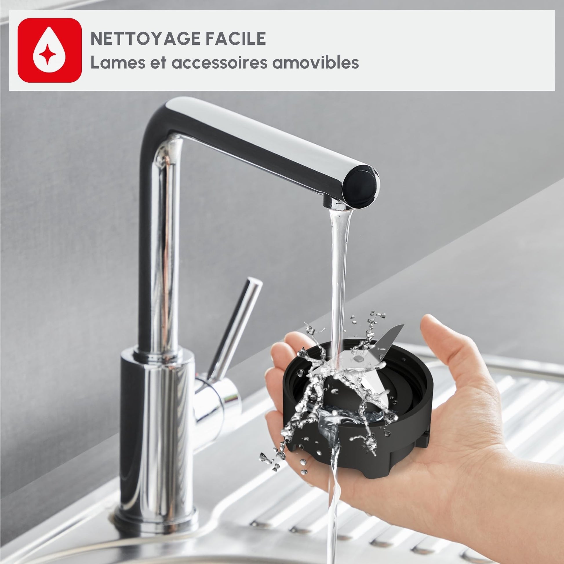 - Mixage lisse : moteur 300 W pour des textures onctueuses en quelques secondes